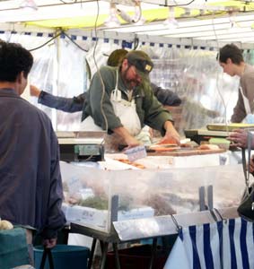 en el mercado de un pueblo: vienen todos los vecinos pero muy