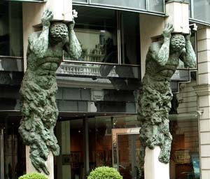 atlantes del siglo 19 y los canalones que evocan el Arte Nuevo