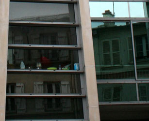 ventanas reflejan los antiguos edificios...