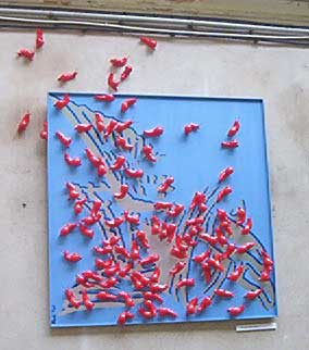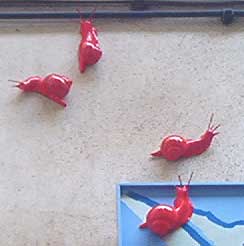 Más asombroso todavía, caracoles rojos paseando por un cuadro-itinerario...