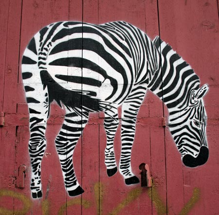 Despues de jugar con el papagayo, el cebra descansaba en una vieja puerta.