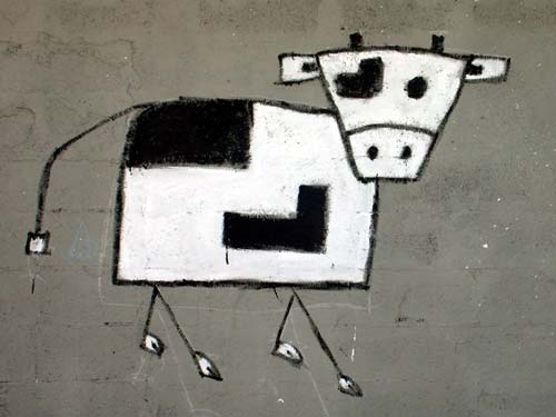 Algunos dicen que las vacas del campo suelen mirar los trenes cuando pasan. La vaquita parisina contemplaba una guardería infantil. Pero los niños se fueron de vacaciones y la vaquita desapareció.