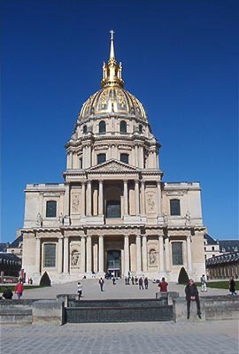 Los Inválidos fueron al principio un importante hospital militar. Ahora varios edificios permiten alojar museos relacionados con el ejército. El domo es la parte superior del santuario donde está la tumba de Napoleon.