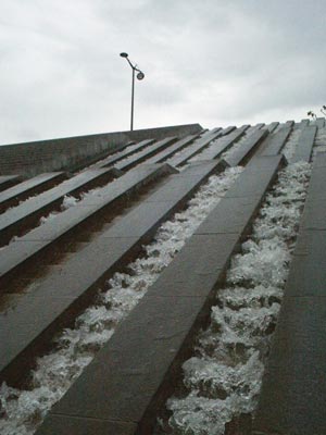 agua al pie de esta moderna cascada.